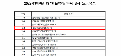 近日,公司成功入選陜西省工業(yè)和信息化廳、陜西省財(cái)政廳公布的2022年陜西省“專精特新”中小企業(yè)名單。此次入選是陜西省對(duì)企業(yè)在專業(yè)化、精細(xì)化及創(chuàng)新能力與成長(zhǎng)性等方面的綜合評(píng)定與認(rèn)可,為企業(yè)后續(xù)可持續(xù)發(fā)展與轉(zhuǎn)型升級(jí),強(qiáng)化競(jìng)爭(zhēng)與綜合實(shí)力創(chuàng)造了有利條件。